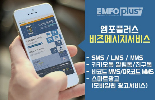 엠포플러스㈜는 기업형 문자메시지 서비스 전문 기업으로 모든 종류의 메시지를 365일 24시간 발송할 수 있도록 문자 발송 전용 웹사이트 및 기업고객의 전산 시스템과 연동할 수 있는 인터페이스 모듈을 무상으로 제공하고 있다. 특히 인터페이스 연동 모듈은 한번의 설치 만으로 SMS(단문메시지), LMS(장문메시지), MMS(멀티메시지)는 물론, 카카오톡 알림톡, 친구톡, 바코드 MMS, QR코드 MMS 등 모든 문자메시지를 발송할 수 있는 편의성을 제공하고 있다.