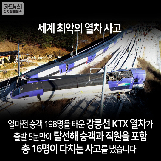 얼마전 승객 198명을 태운 강릉선 KTX 열차가 출발 5분만에 탈선해 승객과 직원을 포함 총 16명이 다치는 사고를 냈습니다.