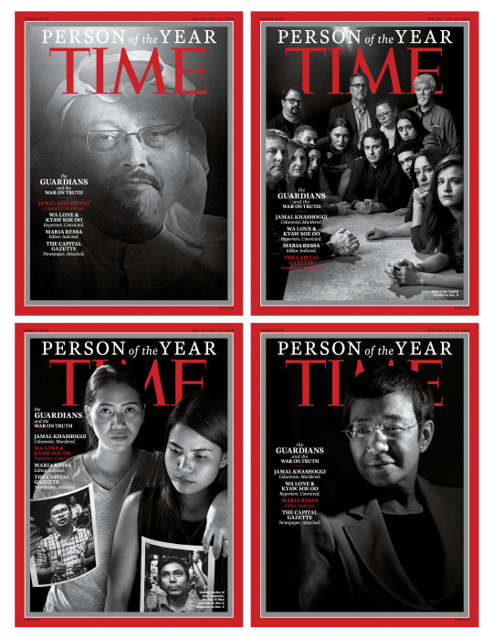 타임은 11일(현지시간) 카슈끄지를 포함해 언론 자유와 진실을 수호하다 숨지거나 탄압받은 언론인들, 이른바 '수호자들과 진실에 대한 전쟁'(guardians and the war on truth)을 올해의 인물로 선정했다고 발표했다.