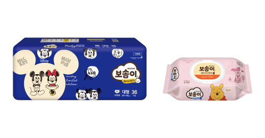이번 콜라보레이션 제품은 보솜이'베이비케어 밴드&팬티'과 '베이비케어' 아기물티슈 등 2종이다.