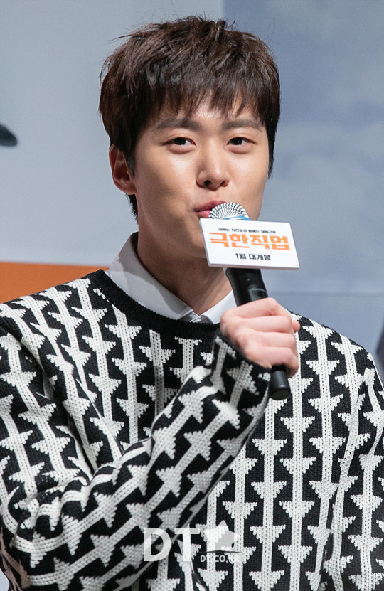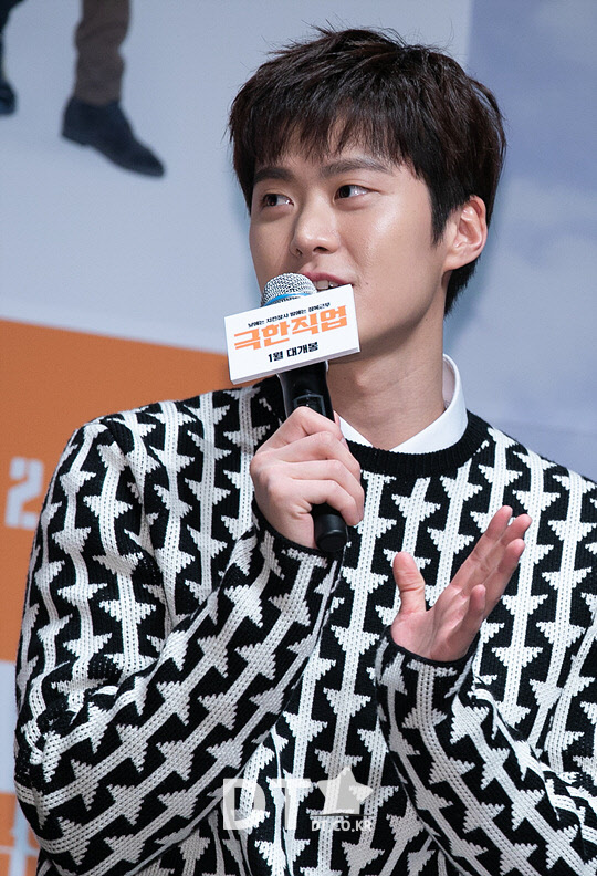 배우 공명이 17일 서울 강남구 CGV 압구정에서 열린 영화 '극한직업' 제작보고회에서 인사말을 하고 있다.