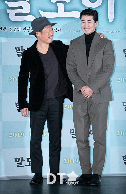 배우 유해진과 윤계상이 17일 서울 광진구 롯데시네마 건대입구에서 열린 영화 '말모이' 언론시사회에서 포즈를 취하고 있다.