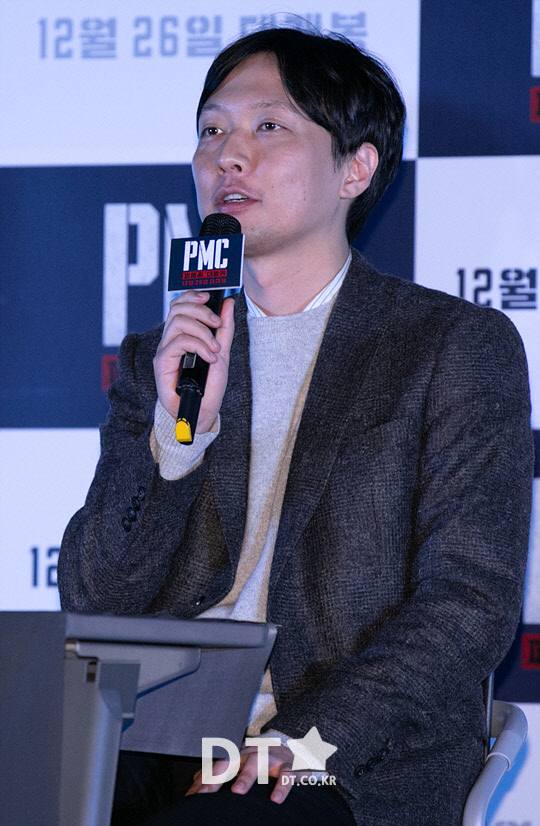 김병우 감독이 18일 서울 CGV 용산아이파크몰에서 열린 영화 'PMC : 더 벙커' 언론시사회에 참석하고 있다.
