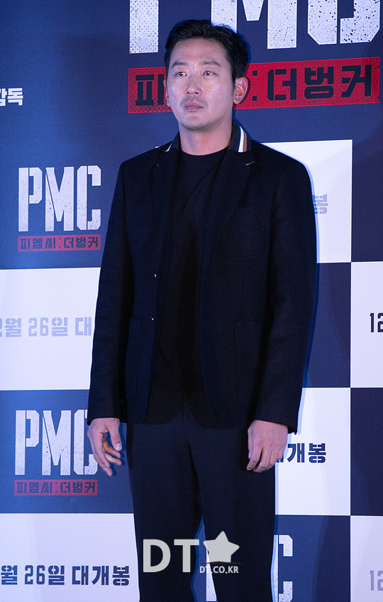 배우 하정우가 18일 서울 CGV 용산아이파크몰에서 열린 영화 'PMC : 더 벙커' 언론시사회에서 포즈를 취하고 있다.