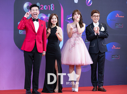 방송인 김선근, 이혜성, 김승혜, 김태진이 22일 서울 여의도 KBS에서 열린 '2018 KBS 연예대상 시상식' 레드카펫 행사에서 포즈를 취하고 있다.
