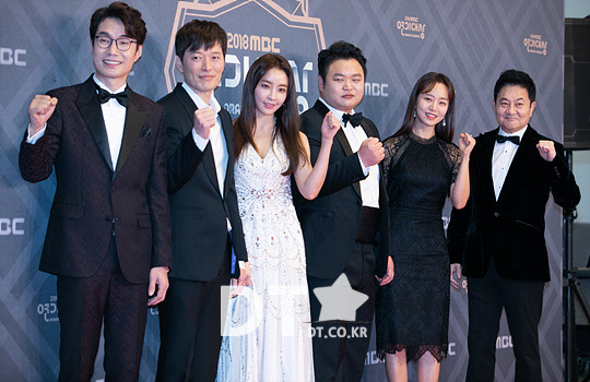 배우 송영규, 정재영, 정유미, 고규필, 노수산나, 박준규가 30일 서울 마포구 상암동 MBC에서 열린 '2018 MBC 연기대상' 레드카펫 행사에 참석해 포즈를 취하고 있다.