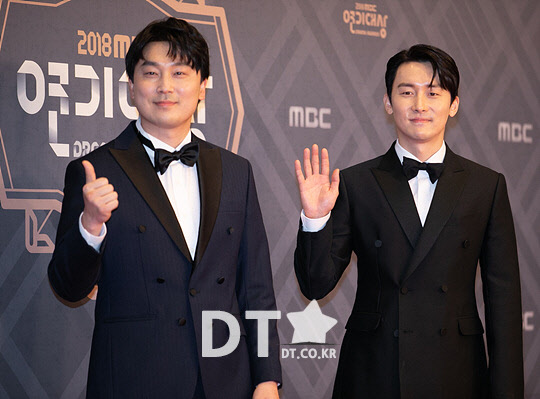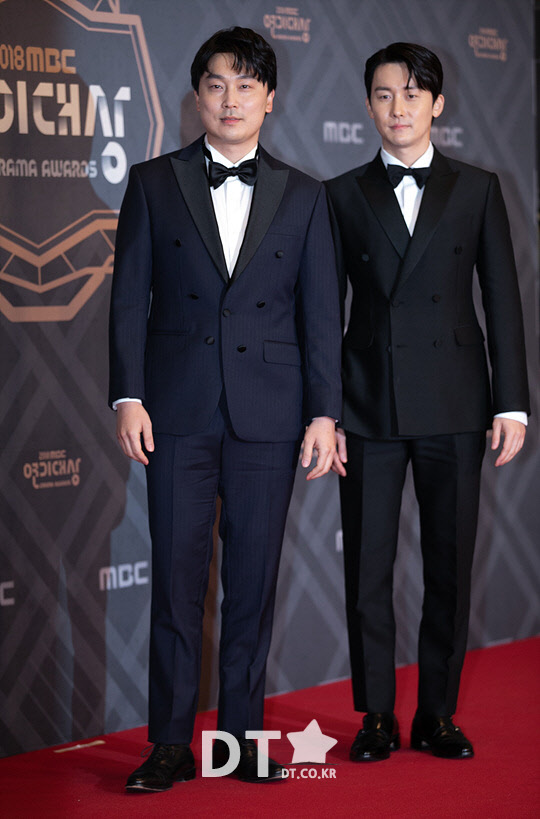 배우 서현우, 김준한이 30일 서울 마포구 상암동 MBC에서 열린 '2018 MBC 연기대상' 레드카펫 행사에 참석해 포즈를 취하고 있다.