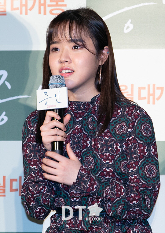 배우 김향기가 10일 서울 광진구 롯데시네마 건대입구점에서 열린 영화 '증인' 제작보고회에서 인사말을 하고 있다.