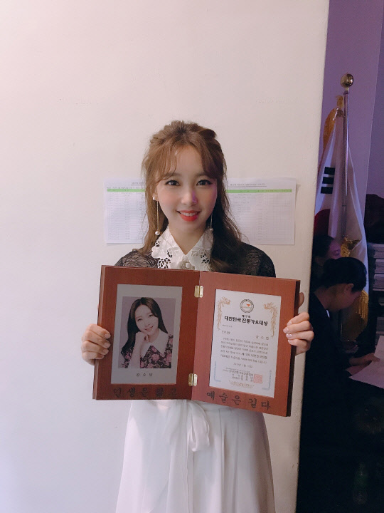 이어 "전통가요라는 장르가 좀 더 사랑받고 트로트의 명맥이 이어지도록 더욱 열심히 활동하겠다"며 "다양한 모습으로 국민들에게 사랑 받는 며느리 강수빈이 되고 싶다"고 포부를 전했다'