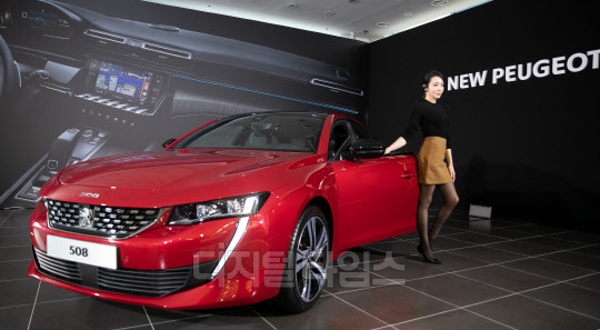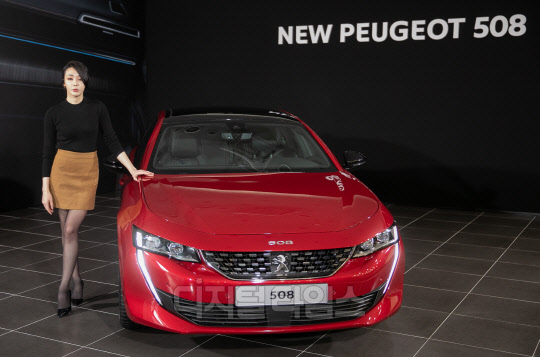 프랑스 자동차 브랜드 푸조의 공식 수입원 한불모터스가 21일 서울 강남구 전시장에서 '뉴(New) 푸조 508' 공식 출시 행사를 갖고 있다.