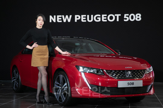 프랑스 자동차 브랜드 푸조의 공식 수입원 한불모터스가 21일 서울 강남구 전시장에서 '뉴(New) 푸조 508' 공식 출시 행사를 갖고 있다.