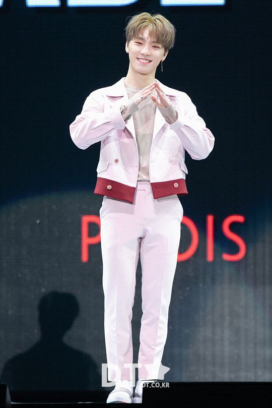 그룹 세븐틴의 디노가 21일 서울 송파구 올림픽공원 올림픽홀에서 열린 미니 6집 앨범 'YOU MADE MY DAWN(유 메이드 마이 던)' 발매 기념 쇼케이스에서 포즈를 취하고 있다.