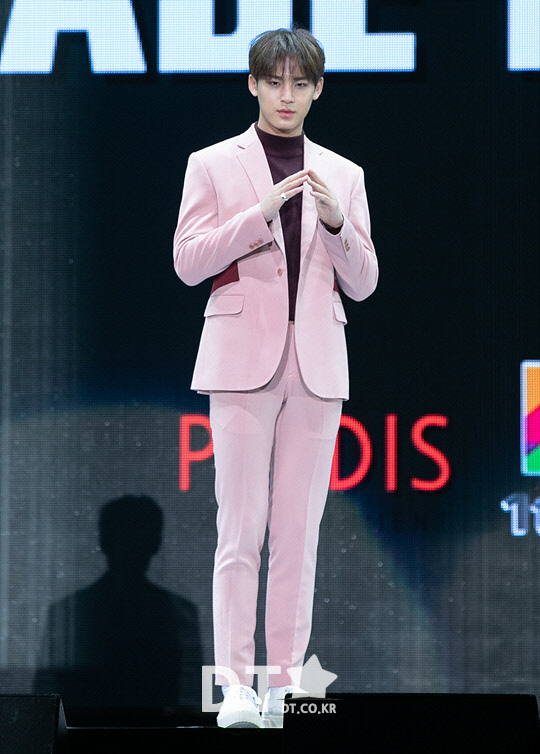 그룹 세븐틴의 민규가 21일 서울 송파구 올림픽공원 올림픽홀에서 열린 미니 6집 앨범 'YOU MADE MY DAWN(유 메이드 마이 던)' 발매 기념 쇼케이스에서 포즈를 취하고 있다.