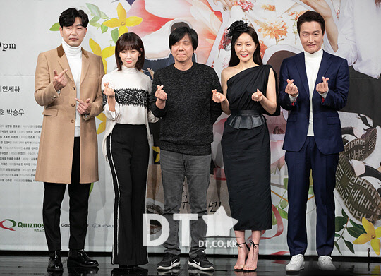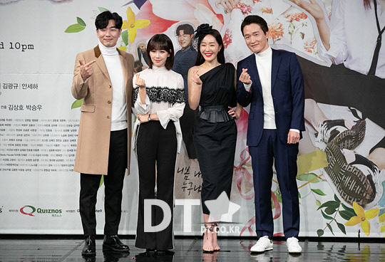 23일 서울 마포구 상암 MBC에서 열린 수목 드라마 '봄이 오나 봄' 제작발표회에서 출연진 및 제작진이 포즈를 취하고 있다.
