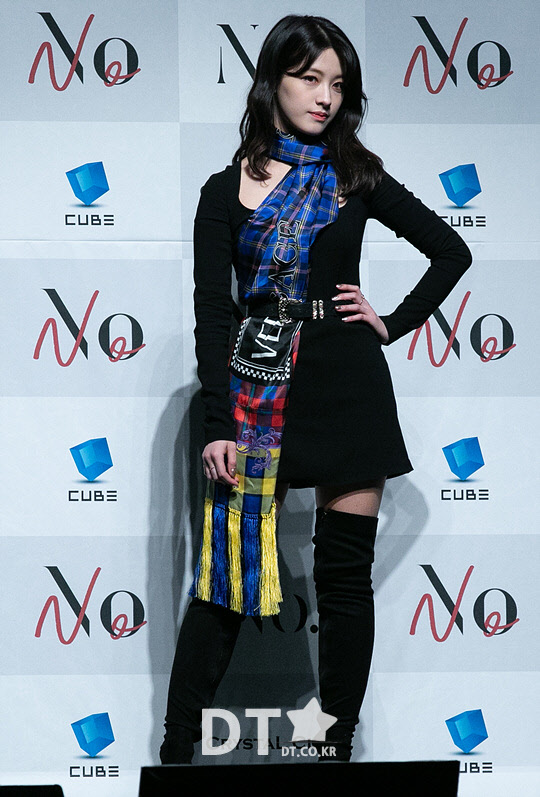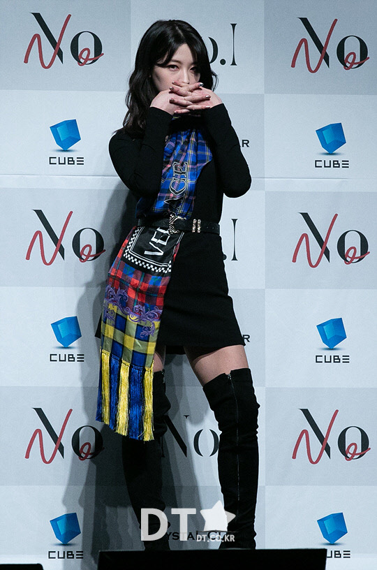 그룹 CLC의 오승희가 30일 서울 용산구 블루스퀘어에서 열린 미니 8집 'No.1' 쇼케이스에서 포즈를 취하고 있다.