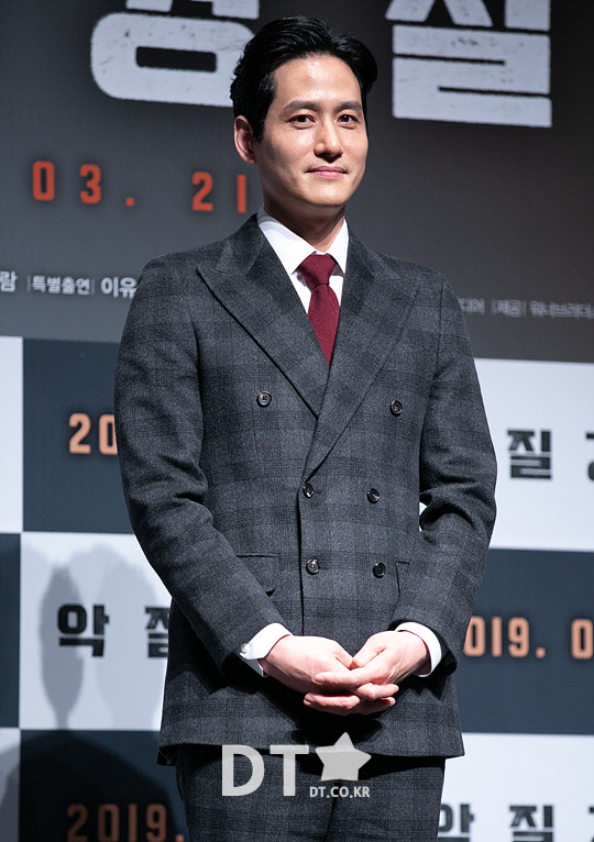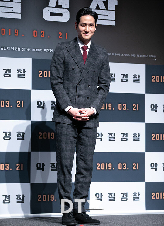 배우 박해준이 25일 서울 강남구 CGV 압구정에서 열린 영화 '악질경찰' 제작보고회에서 포즈를 취하고 있다.