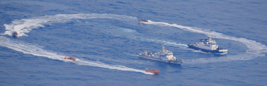 28일 제주 서귀포 남방 해상에서 미국 해안경비대(USCG) 소속 버솔프함(4500t) 등이 우리 해경 이청호함(6500t) 등과 연합훈련을 하고 있다.
