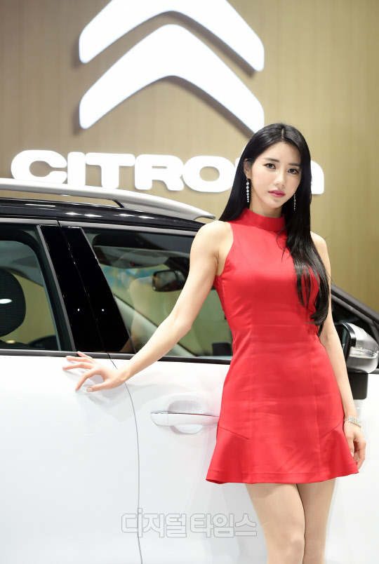 레이싱모델 임솔아가 1일 경기도 일산 KINTEX(킨텍스)에서 열리는 '2019 서울모터쇼' 시트로엥 부스에서 포즈를 취하고 있다.