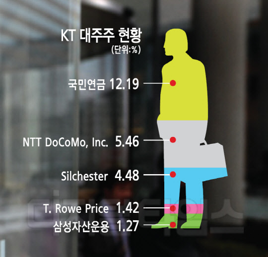 ◇정권 교체때 마다 반복되는 KT의 '흑역사' = KT그룹은 지난 2002년 민영화 된 이후 기용된 수장마다 '불명예 퇴진'이라는 흑역사를 안고 있다. KT는 완전 민간기업으로 전환했지만, CEO 인사 선임은 정치적 이해 관계에 휘둘린다는 지적을 받고 있는 실정이다. KT 흑역사의 이면에는 KT의 최대주주인 국민연금이 있다. KT의 최대주주는 12.19%의 지분을 확보하고 있는 국민연금 이다. KT 대주주로 외국계 투자기관 등도 있지만, 실질적으로는 국민연금이 KT의 최대주주로 막강한 영향력을 행사하고 있다.