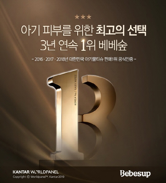 칸타월드패널 코리아가 최근 발표한 '2019 아기물티슈 시장 보고서'에 따르면 베베숲 아기물티슈가 1위를 기록했다.