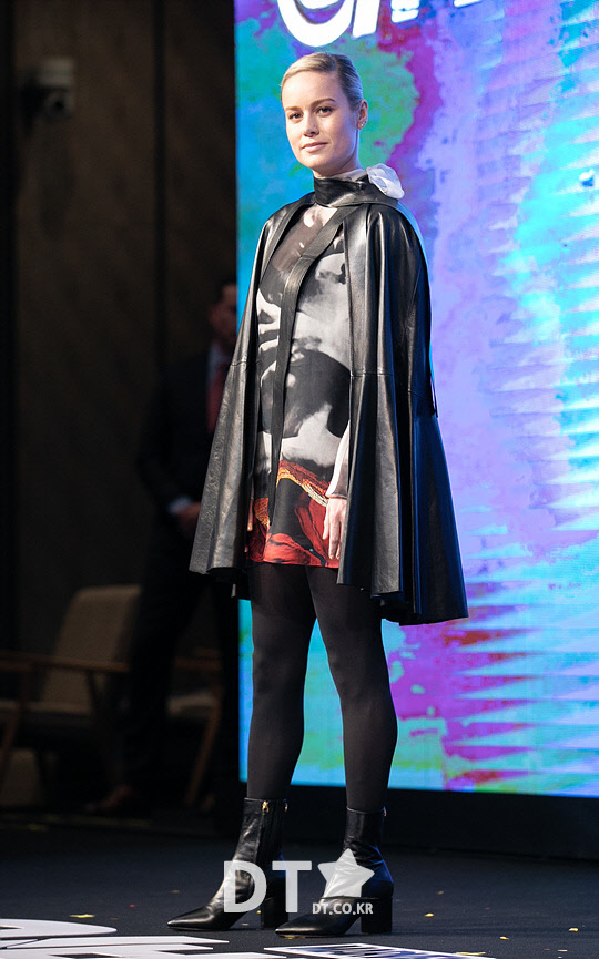 배우 브리 라슨이 15일 광화문 포시즌 호텔 서울에서 열린 해외영화 '어벤져스 : 엔드 게임' 아시아 프레스 컨퍼런스에서 포즈를 취하고 있다.