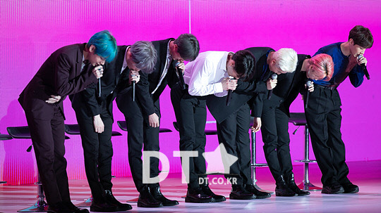 그룹 방탄소년단(뷔, 슈가, 진, 정국, RM, 지민, 제이홉)이 17일 서울 중구 동대문디자인플라자(DDP)에서 열린 MAP OF THE SOUL : PERSONA 발매 글로벌 기자간담회에서 인사를 하고 있다.