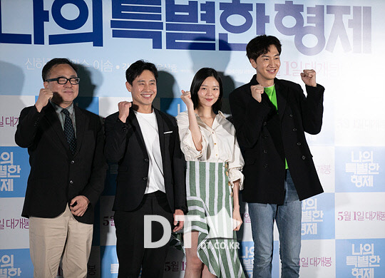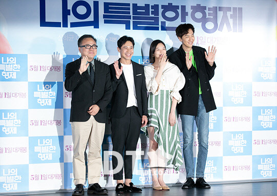17일 서울 광진구 롯데시네마 건대입구에서 열린 영화 '나의 특별한 형제' 언론시사회에서 출연진 및 감독이 포즈를 취하고 있다.