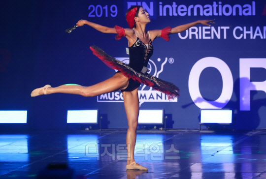 20일 서울 광진구 건국대학교 새천년관에서 열린 2019 맥스큐 머슬마니아 오리엔트 챔피언십에서 이예나 선수가 퍼포먼스를 하고 있다.