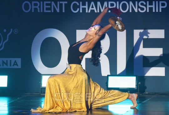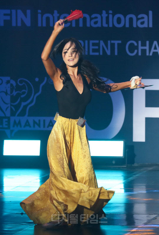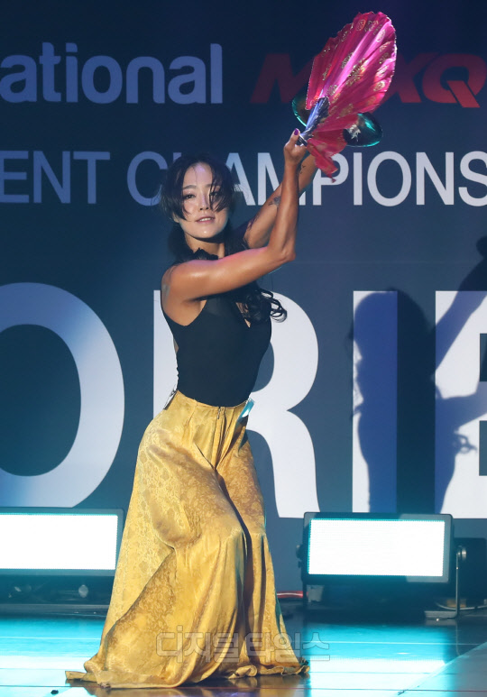 20일 서울 광진구 건국대학교 새천년관에서 열린 2019 맥스큐 머슬마니아 오리엔트 챔피언십에서 이예진 선수가 퍼포먼스를 하고 있다.