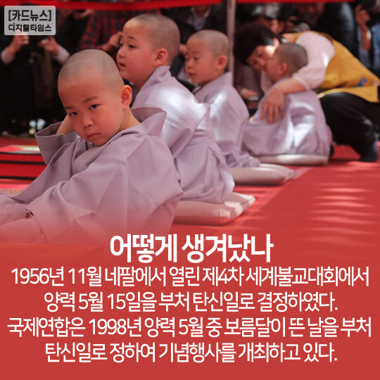 1956년 11월 네팔에서 열린 제4차 세계불교대회에서 양력 5월 15일을 부처 탄신일로 결정하였다.