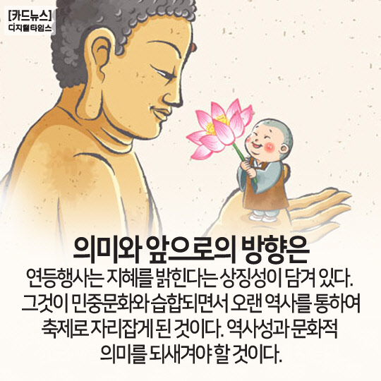 연등행사는 지혜를 밝힌다는 상징성이 담겨 있다. 그것이 민중문화와 습합되면서 오랜 역사를 통하여