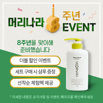 이에 그치지 않고 오픈 8주년 맞이 고객감사 역대급 이벤트로 만족도를 높였다. 오는 31일까지 헤어랜드에서는 신제품 머리나라 프리미엄플러스 샴푸 또는 토닉을 10% 할인가에 만나볼 수 있으며 홈페이지 로그인하면 추가 10% 할인이 가능해 더블할인 혜택을 누릴 수 있다. 샴푸와 토닉을 세트로 구매한다면 혜택은 더욱 풍성해 진다. 가격 할인은 물론 헤어랜드 스테디셀러인 트리니티 샴푸를 추가로 증정하는 것.
