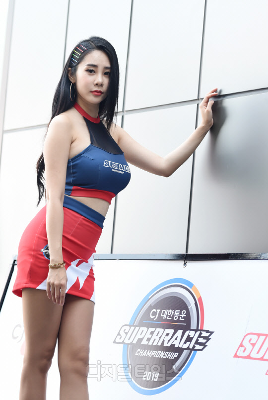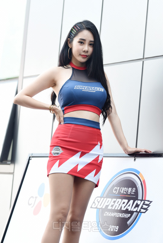 레이싱모델 강하빈이 경기도 용인 에버랜드 스피드웨이에서 열린 '2019 CJ대한통운 슈퍼레이스 챔피언십' 2라운드에서 포즈를 취하고 있다. 슈퍼레이스 챔피언십은 용인 에버랜드 스피드웨이, 강원도 인제 스피디움, 영암 KIC 등 3개 서킷을 오가며 10월 말까지 총 9라운드에 걸쳐 진행된다.