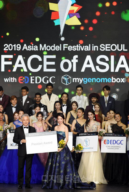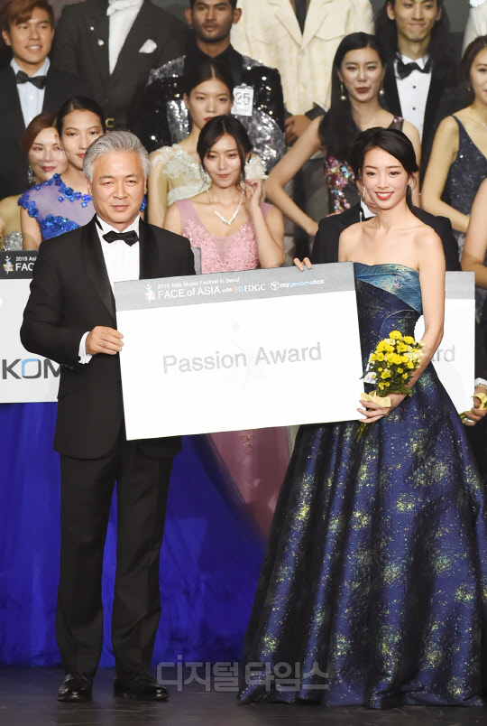 싱가포르 모델 Chui Lin(취 린)이 서울 송파구 올림픽공원 올림픽홀에서 '2019 아시아모델페스티벌(Asia Model Festival)' 부대행사로 진행된 '2019 FACE OF ASIA with mygenomebox(2019 페이스 오브 아시아 with 마이지놈박스)'에서 열정상을 수상, 아시아모델페스티벌조직위원회장 양의식에게 상을 전달받고 있다.