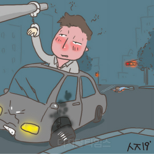 사고 현장에서 수백m를 도망치던 A씨는 도로 연석을 들이받아 차 바퀴가 고장 나면서 결국 붙잡히고 말았다.