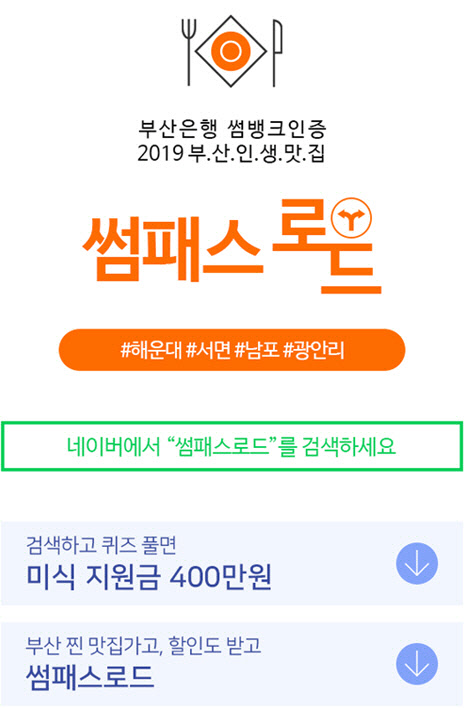 또한 간편 QR결제서비스 썸패스의 혜택 관련 퀴즈 이벤트도 열린다. 참여고객은 네이버에서 '썸패스로드'를 검색하고 퀴즈 이벤트에 참여하면 된다. 퀴즈 정답을 맞춘 고객은 썸패스로드 지역별 맛집 투어 때 사용할 미식 지원금 100만원을 제공받을 수 있다.(해운대, 서면, 남포, 광안리 각 1명, 총 400만원).