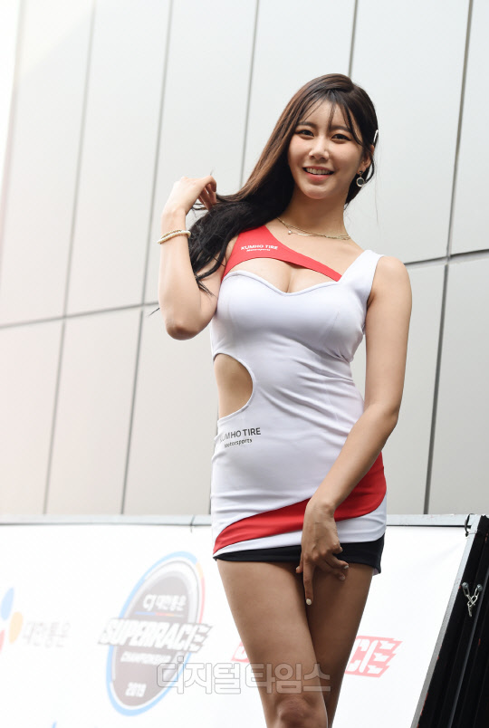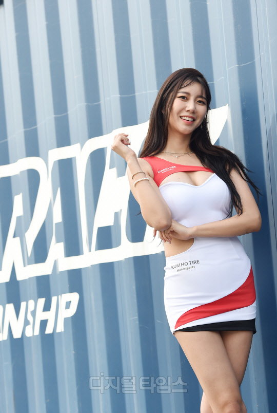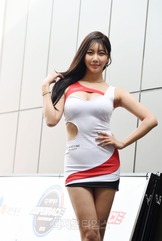 레이싱모델 반지희가 경기도 용인 에버랜드 스피드웨이에서 열린 '2019 CJ대한통운 슈퍼레이스 챔피언십' 2라운드에서 포즈를 취하고 있다. 슈퍼레이스 챔피언십은 용인 에버랜드 스피드웨이, 강원도 인제 스피디움, 영암 KIC 등 3개 서킷을 오가며 10월 말까지 총 9라운드에 걸쳐 진행된다.