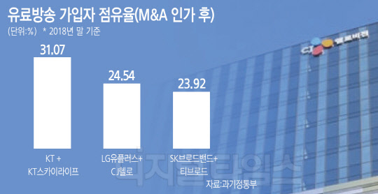유료방송 합산규제는 특정 사업자의 시장점유율이 전체 시장의 33.33%를 넘지 못하도록 하는 제도다. IPTV와 위성방송을 모두 보유하고 국내 유료방송 1위를 기록하고 있는 KT그룹을 견제하기 위한 것으로, 지난 2015년 6월부터 지난해 6월까지 3년 동안 한시적으로 적용된 뒤 일몰됐다.