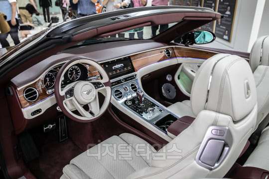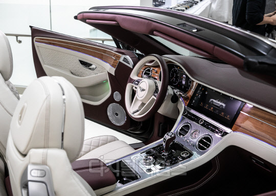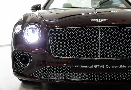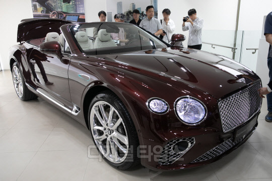 벤틀리모터스코리아가 10일 서울 강남구 청담동 벤틀리 전시장에서 벤틀리모터스 설립 100주년을 기념해 신형 컨티넨탈 GT V8 및 GT V8 컨버터블 모델 프리뷰 행사를 개최했다. 이날 행사에서 GT V8 컨버터블 차량 모습.