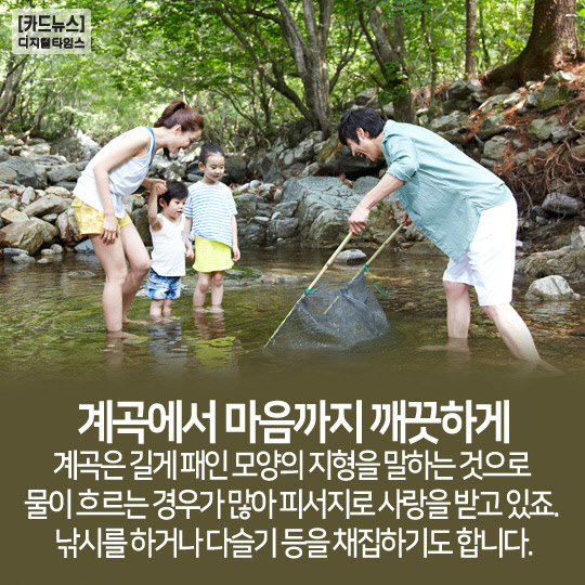 계곡은 길게 패인 모양의 지형을 말하는 것으로 물이 흐르는 경우가 많아 피서지로 사랑을 받고 있죠.
