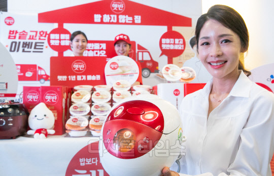 31일 서울 중구 CJ제일제당센터빌딩에서 모델들이 '햇반 밥솥교환 캠페인'을 홍보하고 있다.