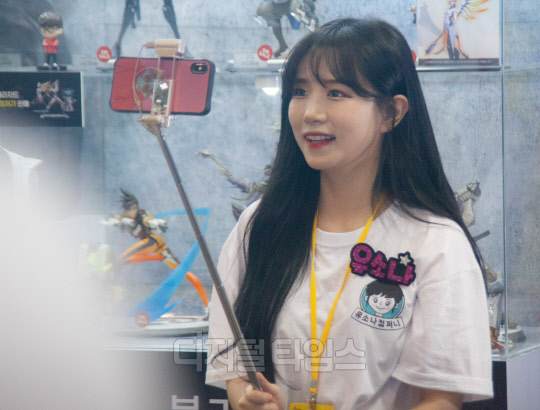 11일 부산 해운대구 벡스코에서 열린 '다이아 페스티벌 2019 in 부산'에서 크리에이터 유소나가 관람객들과 만남의 시간을 갖고 있다.