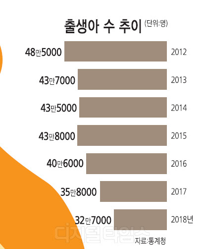 통계청은 28일 이같은 내용의 '2018년 출생 통계(확정)'를 발표했다. 이번 발표는 2019년 4월까지(16개월) 신고된 자료를 기준으로 집계·분석한 결과다. 조사 결과, 지난해 출생아 수는 32만6800명으로 전년 대비 3만900명(8.7%) 감소했다.