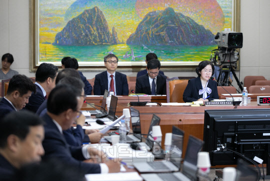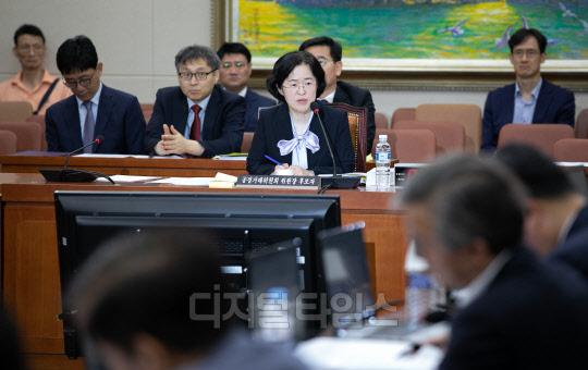 조성욱 공정거래위원장 후보자가 2일 서울 여의도 국회 정무위원회 회의실에서 열린 인사청문회에서 의원들의 질의에 답하고 있다.