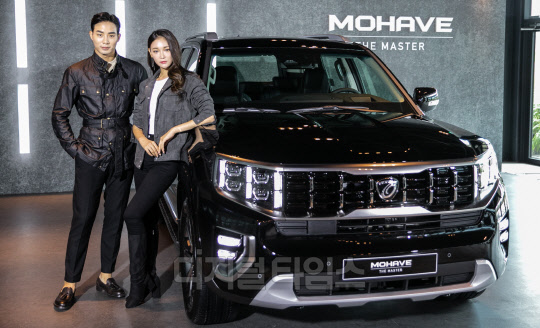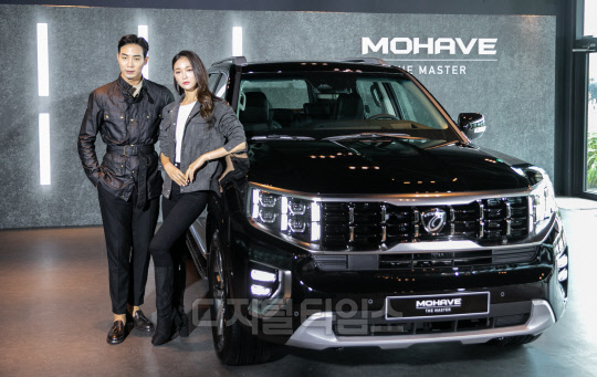 기아자동차가 5일 인천 중구 네스트호텔에서 모하비 더 마스터(MOHAVE the Master) 공식 출시 행사를 갖고 본격적인 판매에 돌입했다. 이날 행사에서 모델들이 차량과 함께 포즈를 취하고 있다.