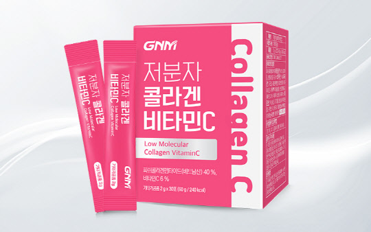 GNM의 신제품 '저분자 콜라겐 비타민C'는 어류에서 추출한 저분자형(1,000~3,000 DA) 콜라겐을 1포(2 g)당 800 mg 섭취할 수 있는 분말형 제품이다. 비타민C도 함께 배합했는데, 1일 영양성분 기준치의 100%를 충족하는 함량으로 든든한 양의 콜라겐과 비타민C를 간편하게 섭취할 수 있다.