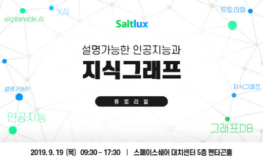 국내 대표적 인공지능 기업 솔트룩스가 9월 19일(목), '설명가능한 인공지능과 지식그래프'를 주제로, 인공지능 최신 트렌드와 기술을 완전정복 할 수 있는 1 Day 세미나&튜토리얼 행사를 진행한다.