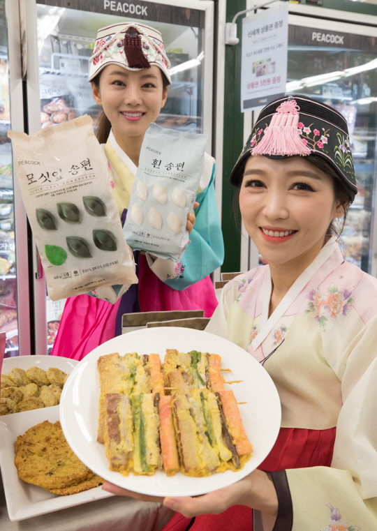 5일 서울 성동구 성수동 이마트 성수점에서 모델들이 피코크 제수음식을 선보이고 있다.