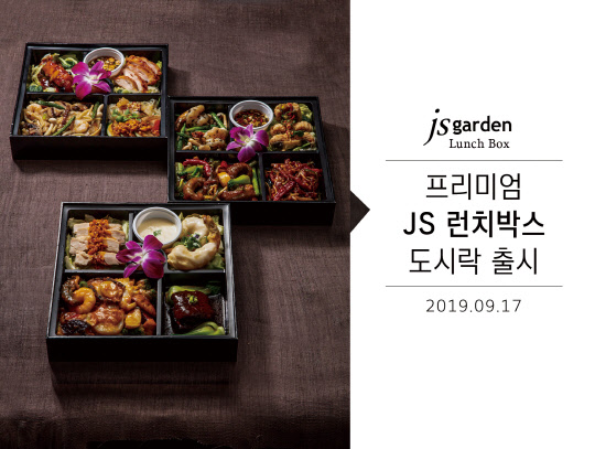 JS가든의 런치박스는 VVIP를 위한 최고급 중식 레스토랑에서 맛볼 수 있는 메뉴를 중심으로 구성된 ▲그린도시락(해파리족발냉채, 유린기, 유산슬, 어향가지) ▲퍼플도시락(닭냉채, 크림중새우, XO전가복, 동파육) ▲블랙도시락(장어튀김, 트러플중새우, 어향유슬, 파풍해삼)으로 가격은 각각 29,000원, 39,000원, 49,000원에 만날 수 있다.