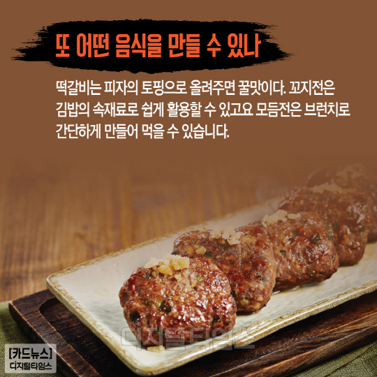 떡갈비는 피자의 토핑으로 올려주면 꿀맛이다. 꼬지전은 김밥의 속재료로 쉽게 활용할 수 있고요 모듬전은 브런치로 간단하게 만들어 먹을 수 있습니다.